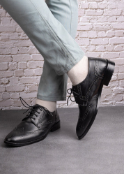 L-0041-B Matte Black Oxford Semi Brogue Formal Shoe
